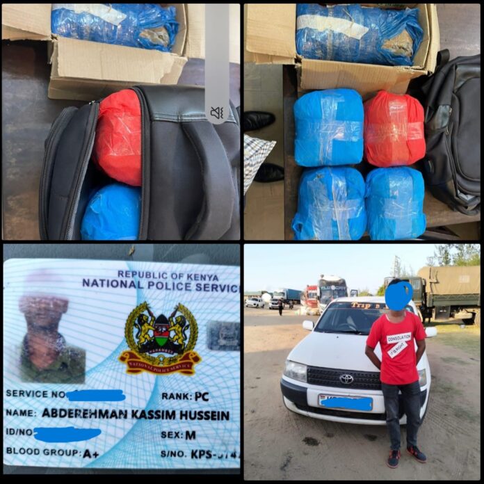 KILIFI: Yesterday, a police officer was apprehended while transporting several kilos of bhang across Sabaki Bridge in Kilifi County.